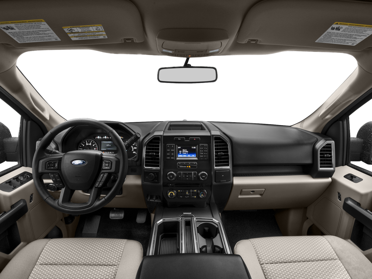 3.31 Axle Ratio, 4-Wheel Disc Brakes, ABS brakes, Air Conditioning, Alloy wheels, Brake assist, Bumpers: chrome, CD player, Class IV Trailer Hitch Receiver, Compass, Delay-off headlights, Driver door bin, Driver vanity mirror, Dual front impact airbags, Dual front side impact airbags, Electronic Stability Control, Front anti-roll bar, Front fog lights, Front reading lights, Front wheel independent suspension, Fully automatic headlights, Illuminated entry, Low tire pressure warning, Occupant sensing airbag, Outside temperature display, Overhead airbag, Panic alarm, Passenger door bin, Passenger vanity mirror, Power door mirrors, Power steering, Power windows, Radio data system, Rear reading lights, Rear step bumper, Remote keyless entry, Security system, Speed control, Speed-sensing steering, Split folding rear seat, Steering wheel mounted audio controls, SYNC 3, Tachometer, Telescoping steering wheel, Tilt steering wheel, Traction control, Variably intermittent wipers, Voice-Activated Navigation, and Voltmeter.