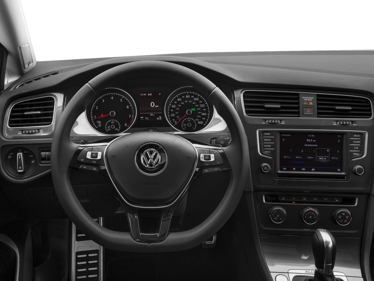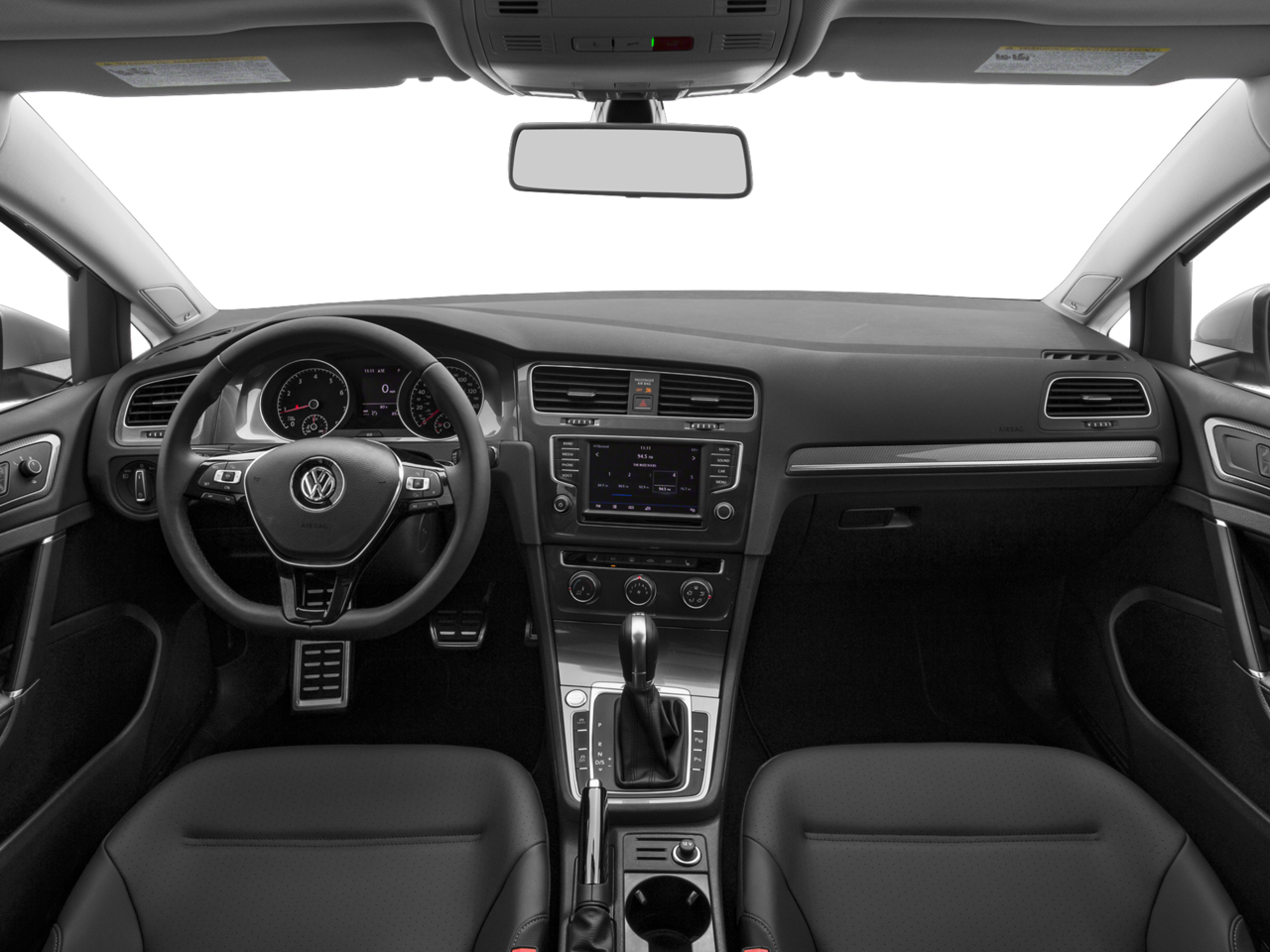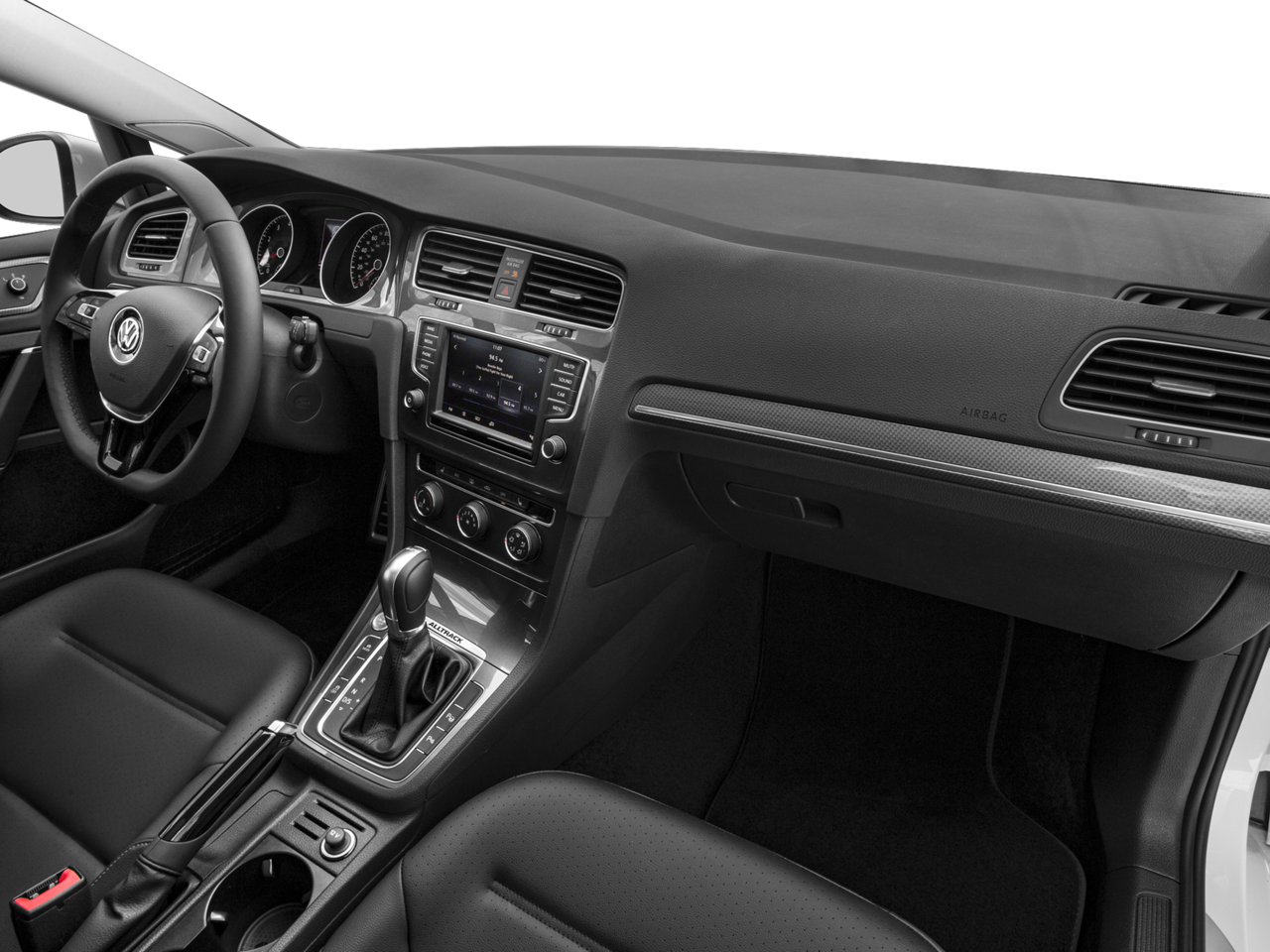 4-Wheel Disc Brakes, ABS brakes, Air Conditioning, Alloy wheels, AM/FM radio: SiriusXM, Anti-whiplash front head restraints, Brake assist, Bumpers: body-color, CD player, Compass, Driver door bin, Driver vanity mirror, Dual front impact airbags, Dual front side impact airbags, Electronic Stability Control, Emergency communication system: VW Car-Net, Exterior Parking Camera Rear, Four wheel independent suspension, Front anti-roll bar, Front Bucket Seats, Front Center Armrest, Front fog lights, Front reading lights, Heated door mirrors, Heated front seats, Illuminated entry, Leather Shift Knob, Leatherette Seating Surfaces, Low tire pressure warning, Occupant sensing airbag, Outside temperature display, Overhead airbag, Overhead console, Panic alarm, Passenger door bin, Passenger vanity mirror, Power door mirrors, Power driver seat, Power passenger seat, Power steering, Power windows, Radio data system, Rear anti-roll bar, Rear reading lights, Rear seat center armrest, Rear window defroster, Rear window wiper, Remote keyless entry, Roof rack: rails only, Security system, Speed control, Speed-sensing steering, Split folding rear seat, Spoiler, Steering wheel mounted audio controls, Tachometer, Telescoping steering wheel, Tilt steering wheel, Traction control, Trip computer, Turn signal indicator mirrors, and Variably intermittent wipers.