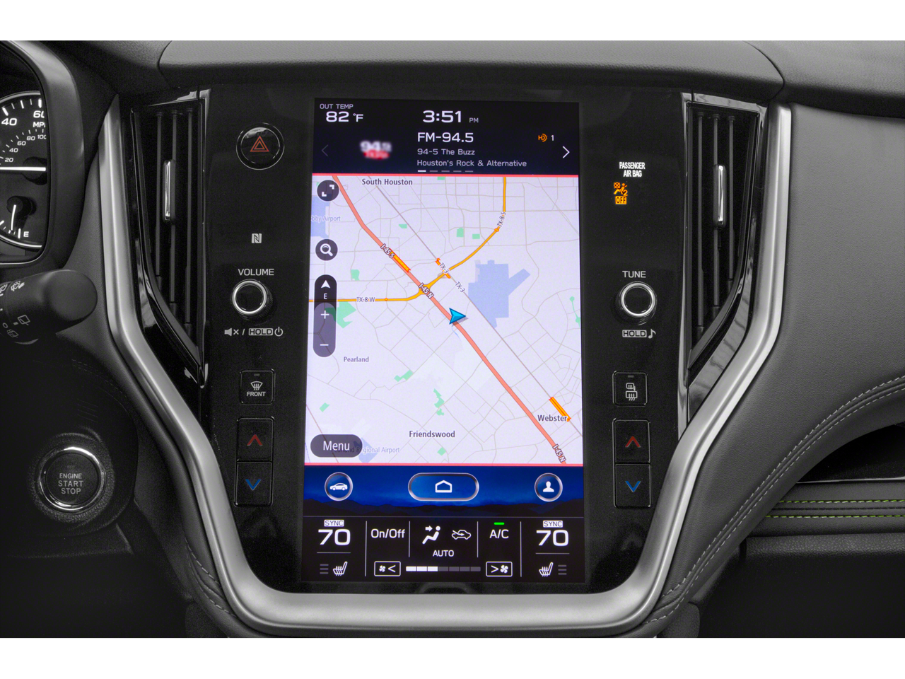 Power Moonroof & Navigation & RAB (Power Moonroof, Radio: Subaru STARLINK 11.6 Multimedia Nav System, and Reverse Automatic Braking (RAB)), 4-Wheel Disc Brakes, 4.111 Axle Ratio, 6 Speakers, ABS brakes, Air Conditioning, All-Weather Floor Liners, Alloy wheels, AM/FM radio: SiriusXM, Auto High-beam Headlights, Auto-dimming Rear-View mirror, Automatic temperature control, Brake assist, Bumpers: body-color, Compass, Driver door bin, Driver vanity mirror, Dual front impact airbags, Dual front side impact airbags, Electronic Stability Control, Emergency communication system: STARLINK Safety and Security (Subscription Required), Exterior Parking Camera Rear, Four wheel independent suspension, Front anti-roll bar, Front Bucket Seats, Front Center Armrest w/Storage, Front dual zone A/C, Front fog lights, Front reading lights, Fully automatic headlights, Garage door transmitter: HomeLink, Heated door mirrors, Heated Front Bucket Seats, Heated front seats, Heated rear seats, Illuminated entry, Knee airbag, Low tire pressure warning, Occupant sensing airbag, Outside temperature display, Overhead airbag, Overhead console, Panic alarm, Passenger door bin, Passenger vanity mirror, Power door mirrors, Power driver seat, Power Liftgate, Power passenger seat, Power steering, Power windows, Radio: Subaru STARLINK 11.6 Multimedia Plus Sys, Rear anti-roll bar, Rear Bumper Cover, Rear Seat Back Protector, Rear seat center armrest, Rear window defroster, Rear window wiper, Remote keyless entry, Roof rack, Security system, Speed control, Speed-sensing steering, Splash Guards, Split folding rear seat, Spoiler, STARLINK/Apple CarPlay/Android Auto, StarTex-Trimmed Upholstery, Steering wheel mounted audio controls, Steering Wheel Paddle Shift Control Switches, Tachometer, Telescoping steering wheel, Tilt steering wheel, Traction control, Trip computer, Turn signal indicator mirrors, Variably intermittent wipers, and Wheels: 18 x 7J Black Aluminum Alloy.