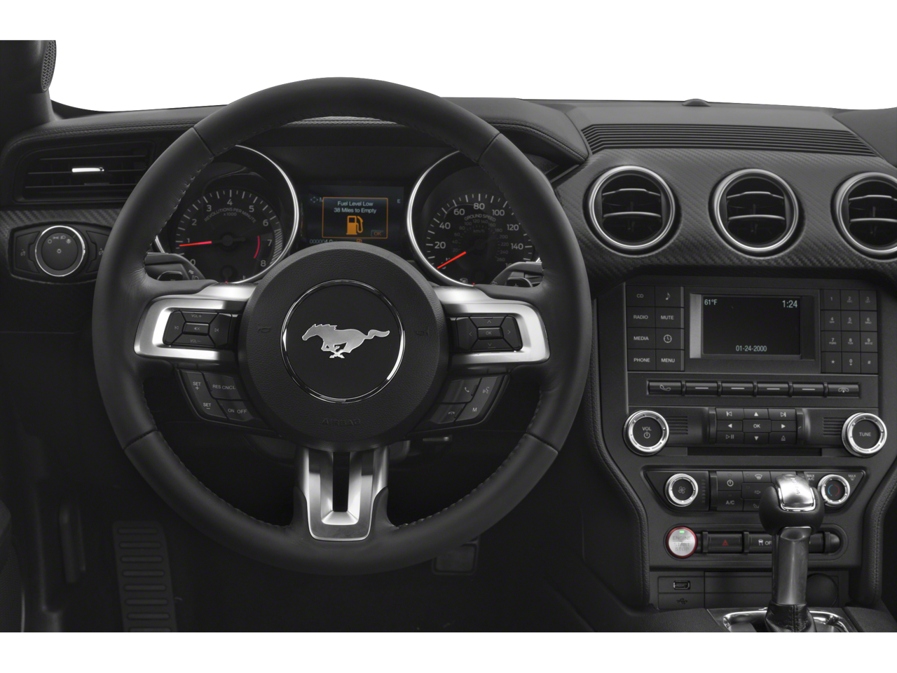 Black Accent Package (Black Front & Rear Pony Badges, Black Mirror Caps, Painted Black Roof, and Wheels: 19 x 8.5 Ebony Black-Painted Aluminum), 4-Wheel Disc Brakes, ABS brakes, Air Conditioning, Alloy wheels, AM/FM Stereo, Auto High-beam Headlights, Auto-dimming Rear-View mirror, Brake assist, Bumpers: body-color, Compass, Delay-off headlights, Driver door bin, Driver vanity mirror, Dual front impact airbags, Dual front side impact airbags, Electronic Stability Control, Emergency communication system: 911 Assist, Exterior Parking Camera Rear, Four wheel independent suspension, Front anti-roll bar, Front Bucket Seats, Front Center Armrest, Front reading lights, Fully automatic headlights, Illuminated entry, Knee airbag, Leather Shift Knob, Low tire pressure warning, Occupant sensing airbag, Outside temperature display, Overhead airbag, Overhead console, Panic alarm, Passenger door bin, Passenger vanity mirror, Power door mirrors, Power steering, Power windows, Radio data system, Rain sensing wipers, Rear anti-roll bar, Rear window defroster, Remote keyless entry, Security system, SiriusXM Radio, Speed control, Speed-sensing steering, Speed-Sensitive Wipers, Split folding rear seat, Steering wheel mounted audio controls, SYNC 3 Communications & Entertainment System, Tachometer, Telescoping steering wheel, Tilt steering wheel, Traction control, Trip computer, Variably intermittent wipers, Voltmeter, and Wheels: 18 x 8 Machined-Face Aluminum.