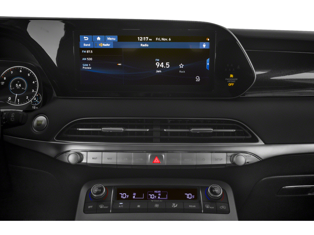 Option Group 01, 12 Speakers, 3.648 Axle Ratio, 3rd row seats: split-bench, 4-Wheel Disc Brakes, ABS brakes, Air Conditioning, Alloy wheels, AM/FM radio: SiriusXM, Apple CarPlay & Android Auto, Auto High-beam Headlights, Auto-dimming Rear-View mirror, Auto-leveling suspension, Automatic temperature control, Brake assist, Bumpers: body-color, Cargo Net, Cargo Tray, Carpeted Floor Mats, Compass, Delay-off headlights, Driver door bin, Driver vanity mirror, Dual front impact airbags, Dual front side impact airbags, Electronic Stability Control, Emergency communication system: Blue Link Connected Car Service (3-year complimentary subscription), Four wheel independent suspension, Front anti-roll bar, Front Bucket Seats, Front Center Armrest, Front dual zone A/C, Front reading lights, Fully automatic headlights, Garage door transmitter: HomeLink, harman/kardon® Speakers, Heads-Up Display, Heated & Ventilated Front Bucket Seats, Heated door mirrors, Heated front seats, Heated rear seats, Heated steering wheel, Illuminated entry, Knee airbag, Low tire pressure warning, Memory seat, Navigation System, Occupant sensing airbag, Outside temperature display, Overhead airbag, Overhead console, Panic alarm, Passenger door bin, Passenger vanity mirror, Power door mirrors, Power driver seat, Power Liftgate, Power moonroof, Power passenger seat, Power steering, Power windows, Premium Nappa Leather Seat Trim, Radio data system, Radio: AM/FM/MP3 Premium Audio System, Rain sensing wipers, Rear air conditioning, Rear anti-roll bar, Rear reading lights, Rear window defroster, Rear window wiper, Reclining 3rd row seat, Remote keyless entry, Security system, Speed control, Speed-sensing steering, Split folding rear seat, Spoiler, Steering wheel mounted audio controls, Tachometer, Telescoping steering wheel, Tilt steering wheel, Traction control, Trip computer, Turn signal indicator mirrors, Variably intermittent wipers, Ventilated front seats, Ventilated rear seats, Wheel Locks, and Wheels: 20 x 7.5J Split 5-Spoke Machined Alloy.