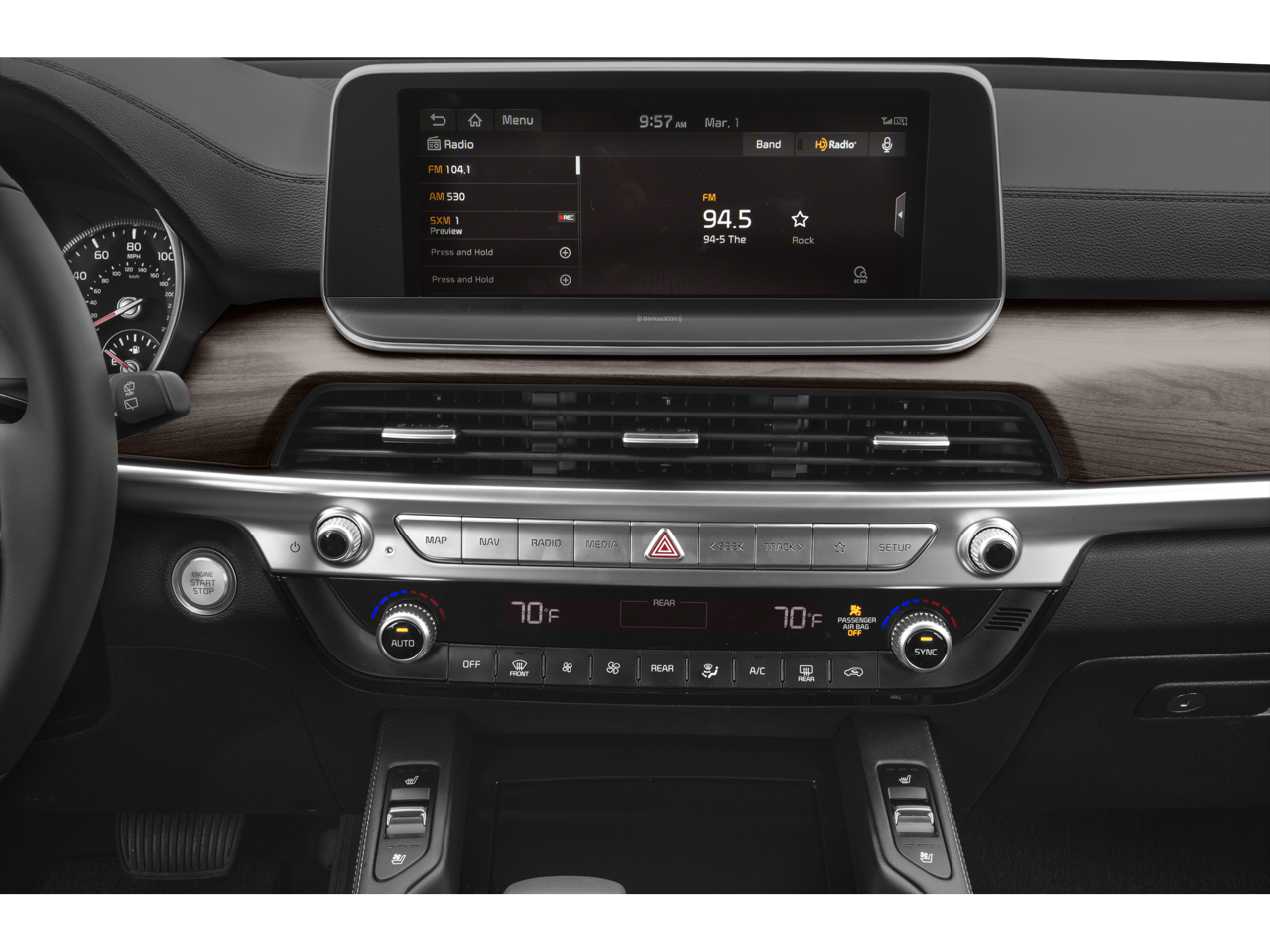 EX Premium Package (2nd Row Captain Chairs, LED Headlamps, Satin Chrome Roof Rails, and Wheels: 7.5 x 20 Machined Finish Alloy), Nightfall Edition Package (Black Finish Radiator Grille, Exclusive Black Headlight Bezels, Front & Rear Gloss Black Finish Bumper Skid Plates, Front & Rear KIA Logo, Gloss Black Finish Exterior Emblems, Gloss Black Finish Front & Rear Door Garnish, Gloss Black Finish Roof Rails, and Wheels: 7.5 x 20 Exclusive Black Finish Alloy), Towing Package (Self Leveling Rear Suspension and Tow Hitch w/Harness (TOF)), 3.648 Axle Ratio, 3rd row seats: split-bench, 4-Wheel Disc Brakes, 6 Speakers, ABS brakes, Air Conditioning, Alloy wheels, AM/FM radio: SiriusXM, Apple CarPlay & Android Auto, Auto-dimming Rear-View mirror, Automatic temperature control, Brake assist, Bumpers: body-color, Carpeted Floor Mats, Compass, Delay-off headlights, Driver door bin, Driver vanity mirror, Dual front impact airbags, Dual front side impact airbags, Electronic Stability Control, Emergency communication system: 911 Connect, Four wheel independent suspension, Front anti-roll bar, Front Bucket Seats, Front Center Armrest, Front dual zone A/C, Front reading lights, Fully automatic headlights, Heated & Ventilated Front Bucket Seats, Heated door mirrors, Heated front seats, Heated steering wheel, Illuminated entry, Knee airbag, Leather Seat Trim, Leather Shift Knob, Leather steering wheel, Low tire pressure warning, Navigation System, Occupant sensing airbag, Outside temperature display, Overhead airbag, Overhead console, Panic alarm, Passenger door bin, Passenger vanity mirror, Power door mirrors, Power driver seat, Power Liftgate, Power moonroof, Power passenger seat, Power steering, Power windows, Radio data system, Radio: AM/FM/SIRIUS Display Audio, Rear air conditioning, Rear anti-roll bar, Rear audio controls, Rear reading lights, Rear seat center armrest, Rear window defroster, Rear window wiper, Reclining 3rd row seat, Remote keyless entry, Roof rack: rails only, Security system, Smart Key w/ Push Button and Remote Start, Speed control, Speed-sensing steering, Split folding rear seat, Spoiler, Steering wheel mounted audio controls, Tachometer, Telescoping steering wheel, Tilt steering wheel, Traction control, Trip computer, Turn signal indicator mirrors, Variably intermittent wipers, Ventilated front seats, and Wheels: 7.5 x 18 Machined Finish Alloy.