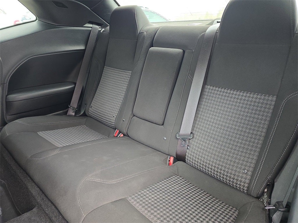 Blacktop Package (AWD Rhombi Black Badge, Black Fuel Filler Door, Black Grille w/Bezel, Challenger Blacktop Grille Badge, Front Fog Lamps, Gloss Black I/P Cluster Trim Rings, Leather Performance Steering Wheel, Rear Black Spoiler, and Satin Black Dodge Tail Lamp Badge), Cold Weather Group (180 Amp Alternator, Heated Front Seats, and Heated Steering Wheel), Quick Order Package 21B, 4-Wheel Disc Brakes, 6 Speakers, ABS brakes, Air Conditioning, Alloy wheels, AM/FM radio, Anti-whiplash front head restraints, Apple CarPlay, Apple CarPlay/Android Auto, Auto-dimming Rear-View mirror, Automatic temperature control, Brake assist, Bumpers: body-color, Compass, Compass Gauge, Delay-off headlights, Driver door bin, Driver vanity mirror, Dual front impact airbags, Dual front side impact airbags, Electronic Stability Control, For More Info, Call 800-643-2112, Four wheel independent suspension, Front anti-roll bar, Front Bucket Seats, Front Center Armrest, Front dual zone A/C, Front reading lights, Fully automatic headlights, Google Android Auto, GPS Antenna Input, Heated door mirrors, Houndstooth Cloth Sport Seat, Illuminated entry, Integrated Center Stack Radio, Integrated Voice Command w/Bluetooth®, Leather Shift Knob, Low tire pressure warning, Media Hub (2 USB, AUX), Outside temperature display, Overhead airbag, Overhead console, Panic alarm, ParkView Rear Back-Up Camera, Passenger door bin, Passenger vanity mirror, Power door mirrors, Power driver seat, Power steering, Power windows, Radio data system, Radio: Uconnect 4 w/7 Display, Rear anti-roll bar, Rear reading lights, Rear seat center armrest, Rear window defroster, Remote keyless entry, Security system, SiriusXM Radio Service, SiriusXM Satellite Radio, Speed control, Speed-sensing steering, Split folding rear seat, Spoiler, Steering wheel mounted audio controls, Tachometer, Telescoping steering wheel, Tilt steering wheel, Traction control, Trip computer, USB Host Flip, Variably intermittent wipers, Wheels: 19 x 7.5 Black Noise Painted, and Wheels: 19 x 7.5 Satin Carbon.