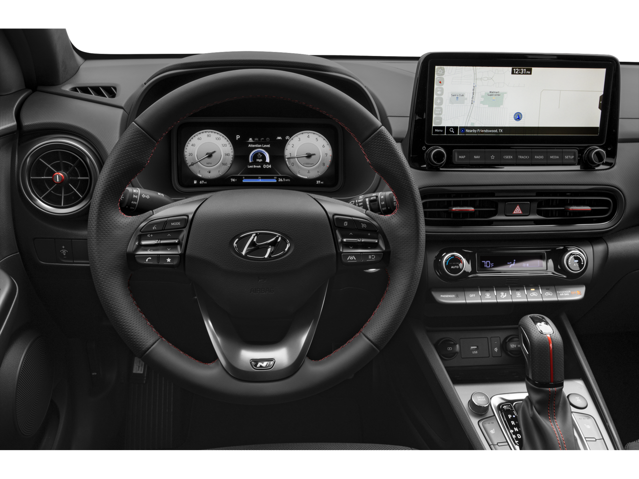 Cargo Package (Cargo Blocks, Cargo Net, and Cargo Tray), Option Group 01, 18 x 7.5J Alloy Wheels, 3.174 Axle Ratio, 4-Wheel Disc Brakes, 6 Speakers, ABS brakes, Air Conditioning, Alloy wheels, AM/FM radio: SiriusXM, Apple CarPlay & Android Auto, Automatic temperature control, Brake assist, Bumpers: body-color, Carpeted Floor Mats, Delay-off headlights, Driver door bin, Driver vanity mirror, Dual front impact airbags, Dual front side impact airbags, Electronic Stability Control, Emergency communication system: Blue Link Connected Car Service (3-year complimentary subscription), Exterior Parking Camera Rear, First Aid Kit, Front anti-roll bar, Front Bucket Seats, Front Center Armrest, Front reading lights, Front wheel independent suspension, Fully automatic headlights, Heated door mirrors, Heated front seats, Heated Sport Front Bucket Seats, Illuminated entry, Leather Shift Knob, Leather steering wheel, Low tire pressure warning, Navigation System, Occupant sensing airbag, Outside temperature display, Overhead airbag, Overhead console, Panic alarm, Passenger door bin, Passenger vanity mirror, Power door mirrors, Power driver seat, Power moonroof, Power steering, Power windows, Radio: AM/FM/HD/SiriusXM Audio System, Rear Bumper Applique, Rear seat center armrest, Rear window defroster, Rear window wiper, Remote keyless entry, Security system, Speed control, Speed-sensing steering, Split folding rear seat, Spoiler, Sport Cloth Seat Trim, Steering wheel mounted audio controls, Tachometer, Telescoping steering wheel, Tilt steering wheel, Traction control, Trip computer, Turn signal indicator mirrors, Variably intermittent wipers, and Wheel Locks.