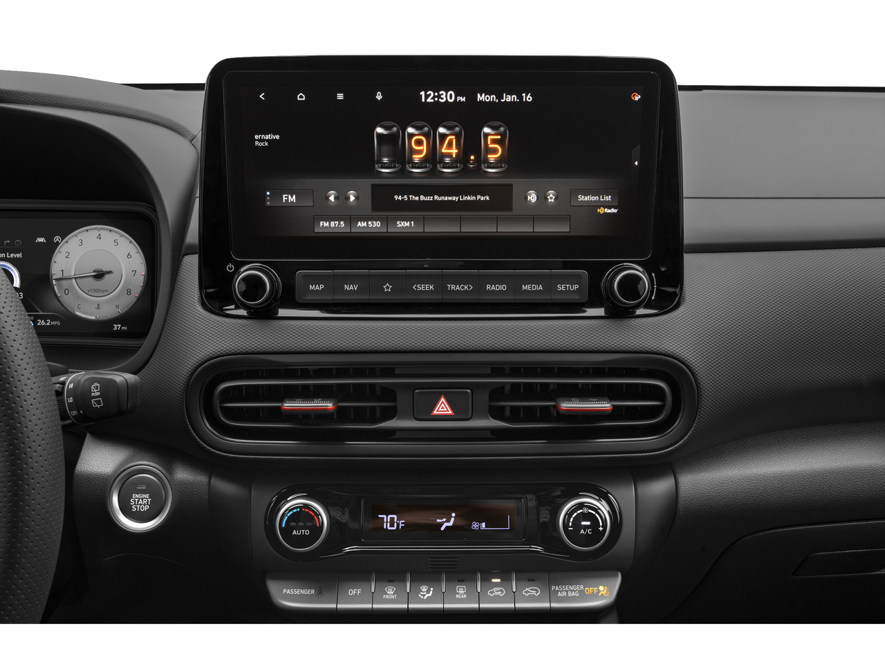 - Radio: AM/FM/HD/SiriusXM Audio System -inc: 10.25" color touchscreen, onboard navigation and traffic flow and incident data free via HD radio (HERE), 6 speakers, Android Auto, Apple CarPlay, supports Siri and Google Now, 1 amp USB data/charge jack, Bluetooth®, Blue Link connected car system and Over-the-Air (OTA) map updates