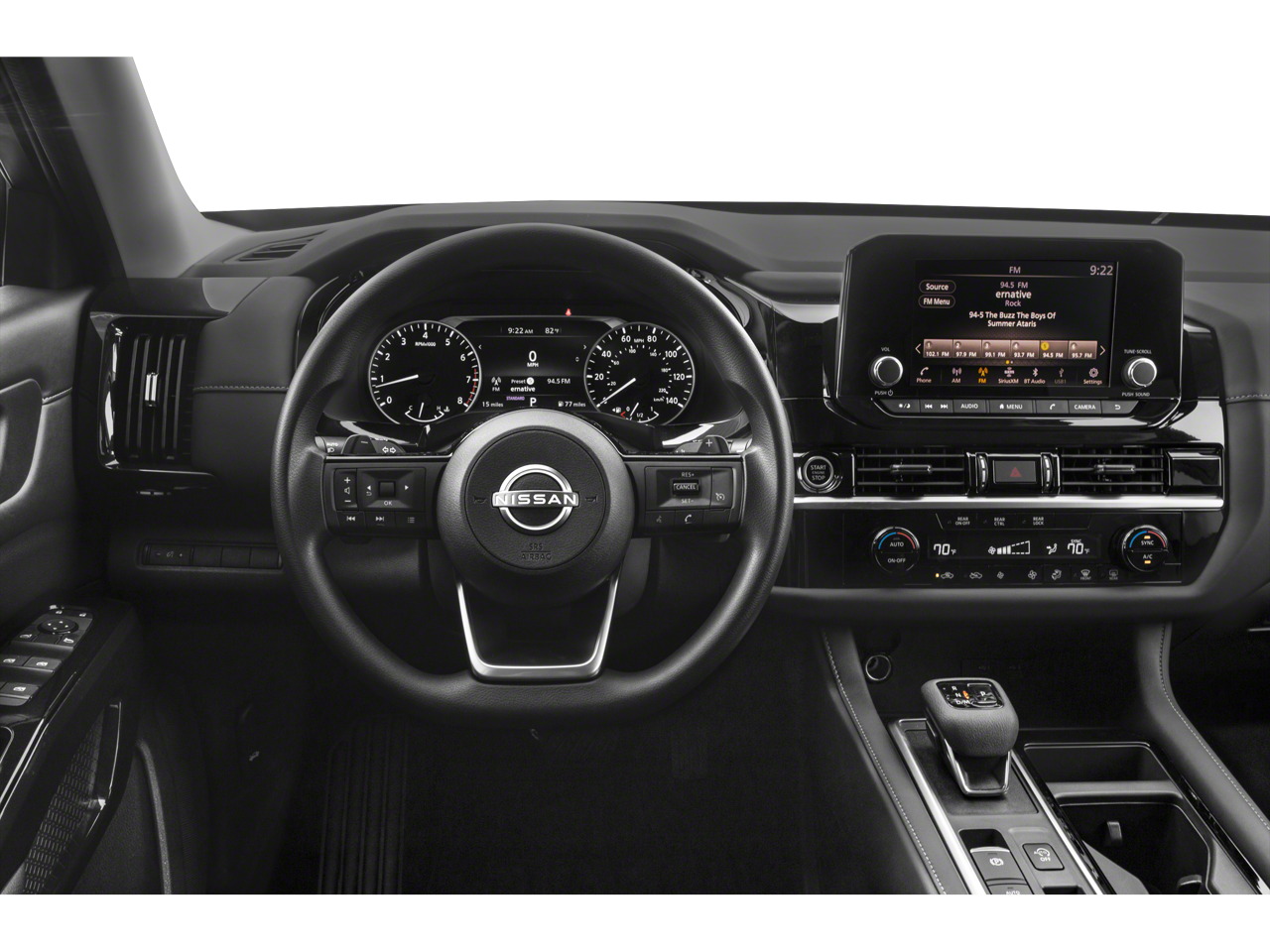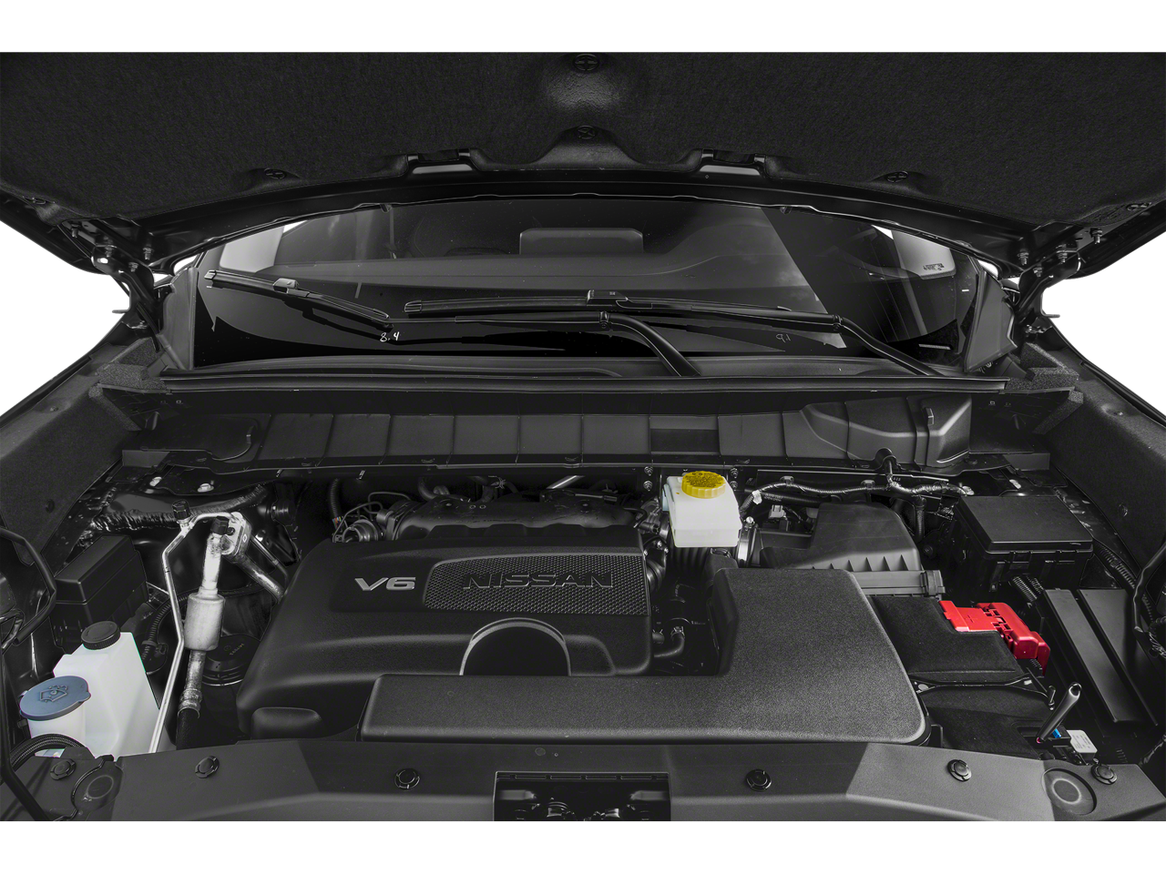 18 Painted Alloy Wheels, 3rd row seats: bench, 4-Wheel Disc Brakes, 6 Speakers, ABS brakes, Air Conditioning, Alloy wheels, AM/FM radio: SiriusXM, Auto High-beam Headlights, Automatic temperature control, Axle Ratio: 4.334, Bench Seat Carpeted Floor Mats (Set of 4), Black Splash Guards (Set of 4), Blind Spot Warning, Brake assist, Bumpers: body-color, Cloth Seating Surfaces, Delay-off headlights, Driver door bin, Driver vanity mirror, Dual front impact airbags, Dual front side impact airbags, Electronic Stability Control, Four wheel independent suspension, Front anti-roll bar, Front Bucket Seats, Front Center Armrest, Front dual zone A/C, Front reading lights, Fully automatic headlights, Illuminated entry, Knee airbag, Low tire pressure warning, NissanConnect featuring Apple CarPlay and Android Auto, Occupant sensing airbag, Outside temperature display, Overhead airbag, Overhead console, Panic alarm, Passenger door bin, Passenger vanity mirror, Power door mirrors, Power steering, Power windows, Radio data system, Radio: AM/FM Audio System w/NissanConnect, Rear air conditioning, Rear anti-roll bar, Rear Parking Sensors, Rear reading lights, Rear side impact airbag, Rear window defroster, Rear window wiper, Reclining 3rd row seat, Remote keyless entry, Security system, Speed control, Speed-sensing steering, Split folding rear seat, Spoiler, Steering wheel mounted audio controls, Tachometer, Telescoping steering wheel, Tilt steering wheel, Traction control, Trip computer, and Variably intermittent wipers.
