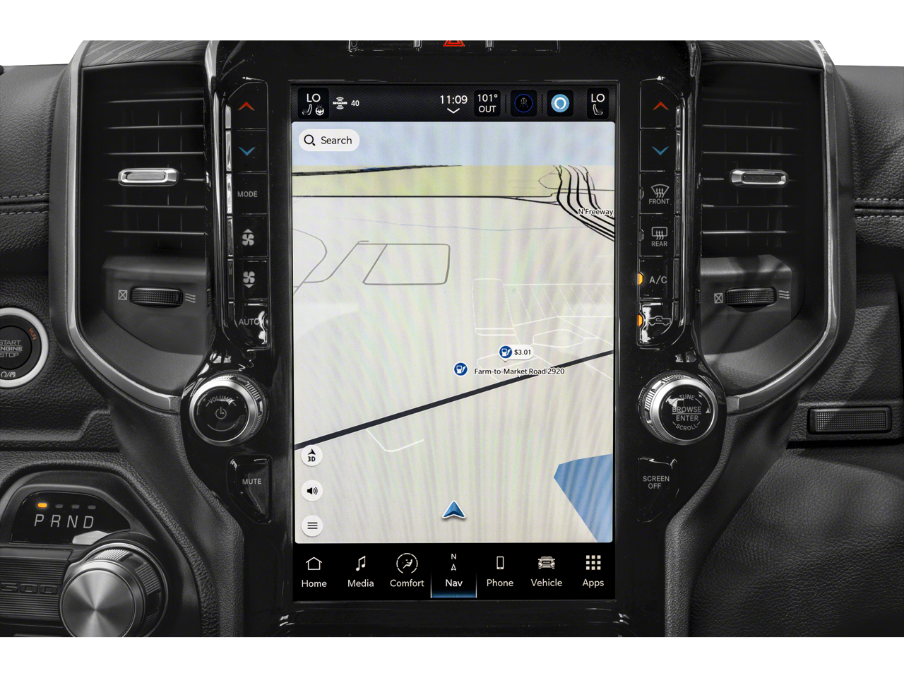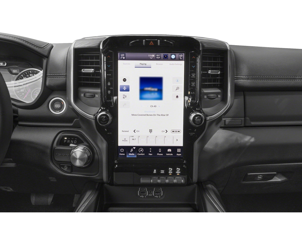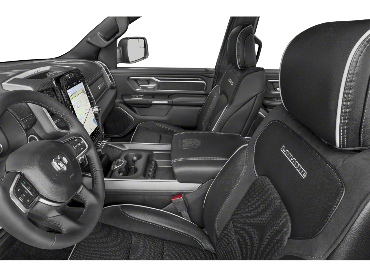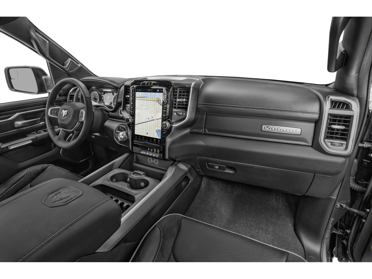 Bed Utility Group (MOPAR 4 Adjustable Cargo Tie-Down Hooks, MOPAR Spray In Bedliner, and Pick-Up Box Lighting), Laramie Level 1 Equipment Group (12 Touchscreen Display, 2nd Row In Floor Storage Bins, 4G LTE Wi-Fi Hot Spot, Apple CarPlay, Auto High Beam Headlamp Control, Blind Spot & Cross Path Detection, Connected Travel & Traffic Services, Connectivity - US/Canada, Disassociated Touchscreen Display, Electric Shift-On-Demand Transfer Case, Foam Bottle Insert (Door Trim Panel), For Details, Visit DriveUconnect.com, For More Info, Call 800-643-2112, Front Door Accent Lighting, Front LED Fog Lamps, Global Telematics Box Module (TBM), Google Android Auto, GPS Antenna Input, GPS Navigation, HD Radio, Integrated Center Stack Radio, Integrated Voice Command w/Bluetooth®, LED Reflector Headlamps, Radio: Uconnect 5 Nav w/12.0 Display, Rain Sensitive Windshield Wipers, Rear Door Accent Lighting, Rear Power Sliding Window, Rear Window Defroster, Remote Tailgate Release, SiriusXM Radio Service, SiriusXM w/360L, and USB Host Flip), Quick Order Package 27H Laramie, Sport Appearance Package (Black Interior Accents, Body Color Exterior Mirrors, Body Color Front Bumper, Body Color Premium Power Mirrors, Body Color Rear Bumper w/Step Pads, Grille Surround 3 Body Color Tex 2 Black, RAM Grille Badge - Chrome, Sport Decal, Sport Performance Hood, and Wheels: 20 x 9 Premium Painted w/Inserts), #1 Seat Foam Cushion, 10 Speakers, 3 Rear Seat Head Restraints, 3.21 Rear Axle Ratio, 33 Gallon Fuel Tank, 4 Way Front Headrests, 4-Wheel Disc Brakes, 48V Belt Starter Generator, ABS brakes, Adjustable pedals, Air Conditioning, Alloy wheels, AM/FM radio: SiriusXM with 360L, Anti-Spin Differential Rear Axle, Apple CarPlay/Android Auto, Audio memory, Auto-dimming door mirrors, Auto-Dimming Exterior Driver Mirror, Auto-dimming Rear-View mirror, Automatic temperature control, Brake assist, Bumpers: chrome, Chrome Exterior Mirrors, Class IV Receiver Hitch, Compass, Convex Wide-Angle Exterior Mirror Insert, Delay-off headlights, Driver door bin, Driver Seat Memory, Driver vanity mirror, Dual front impact airbags, Dual front side impact airbags, Electronic Stability Control, Exterior Mirrors Courtesy Lamps, Exterior Mirrors w/Heating Element, Exterior Mirrors w/Memory, Exterior Mirrors w/Supplemental Signals, Front anti-roll bar, Front Center Armrest w/Storage, Front dual zone A/C, Front fog lights, Front reading lights, Front Seat Back Map Pockets, Front wheel independent suspension, Fully automatic headlights, Garage door transmitter, Heated door mirrors, Heated Front Seats, Heated front seats, Heated Steering Wheel, Heated steering wheel, Illuminated entry, Leather steering wheel, Leather Trim 40/20/40 Bench Seat, Low tire pressure warning, Memory seat, Navigation System, Occupant sensing airbag, Outside temperature display, Overhead airbag, Overhead console, Panic alarm, ParkSense Front/Rear Park Assist w/Stop (DISC), ParkView Rear Back-Up Camera, Passenger door bin, Passenger vanity mirror, Pedal memory, Power 2-Way Driver Lumbar Adjust, Power 2-Way Passenger Lumbar Adjust, Power 8-Way Driver & Passenger Seats, Power door mirrors, Power driver seat, Power passenger seat, Power steering, Power windows, Power-Folding Mirrors, Radio data system, Radio: Uconnect 5 Nav w/8.4 Display, Rear 60/40 Folding Seat, Rear anti-roll bar, Rear seat center armrest, Rear step bumper, Rear Underseat Compartment Storage, Rear Wheelhouse Liners, Remote keyless entry, Security system, Speed control, Split folding rear seat, Steering wheel mounted audio controls, Tachometer, Telescoping steering wheel, Tilt steering wheel, Traction control, Trip computer, Turn signal indicator mirrors, Variably intermittent wipers, Ventilated Front Seats, Ventilated front seats, Voltmeter, Wheel to Wheel Side Steps, Wheels: 18 x 8 Alum