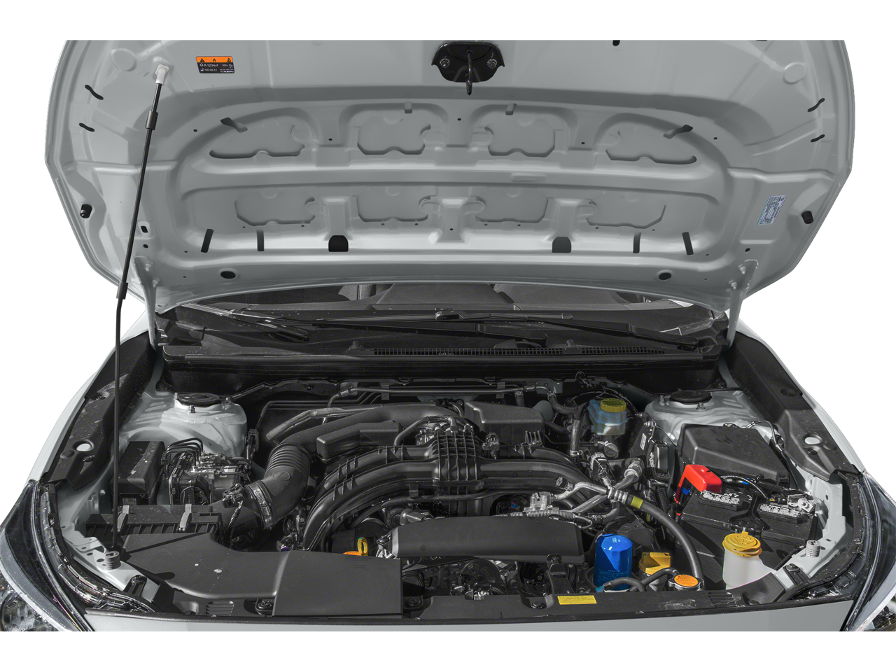 Standard Model w/CVT (EyeSight System, High Grade Combination Meter w/Color LCD Display, Overhead Console Shower Light, and Rear Seat Reminder), 4 Speakers, 4-Wheel Disc Brakes, ABS brakes, Air Conditioning, All-Weather Floor Liners, AM/FM radio, Anti-whiplash front head restraints, Brake assist, Bumpers: body-color, Cloth Upholstery, Driver door bin, Driver vanity mirror, Dual front impact airbags, Dual front side impact airbags, Electronic Stability Control, Exterior Parking Camera Rear, Four wheel independent suspension, Front anti-roll bar, Front Bucket Seats, Front Center Armrest, Front reading lights, Illuminated entry, Knee airbag, Low tire pressure warning, Occupant sensing airbag, Outside temperature display, Overhead airbag, Overhead console, Panic alarm, Passenger door bin, Passenger vanity mirror, Power door mirrors, Power steering, Power windows, Radio data system, Radio: Subaru STARLINK 6.5 Multimedia System, Rear window defroster, Rear window wiper, Remote keyless entry, Security system, Speed control, Speed-sensing steering, Split folding rear seat, Spoiler, STARLINK/Apple CarPlay/Android Auto, Steering wheel mounted audio controls, Tachometer, Telescoping steering wheel, Tilt steering wheel, Tire Pressure Monitoring System, Traction control, Trip computer, Variably intermittent wipers, and Wheels: 16 x 6.5 Black Finish J Steel.