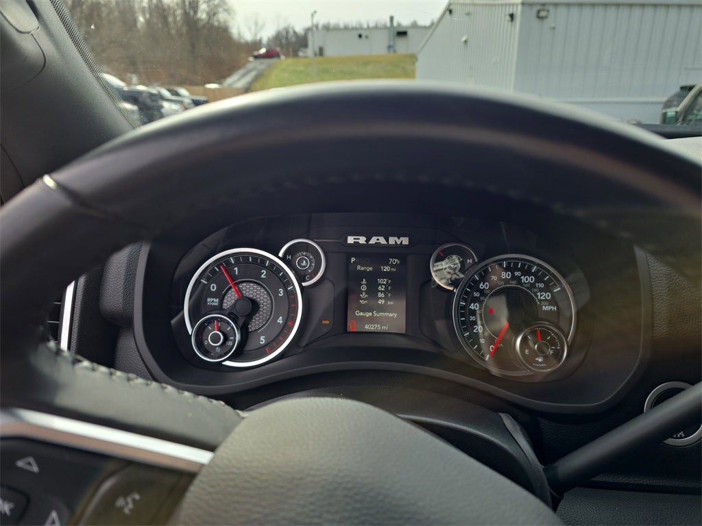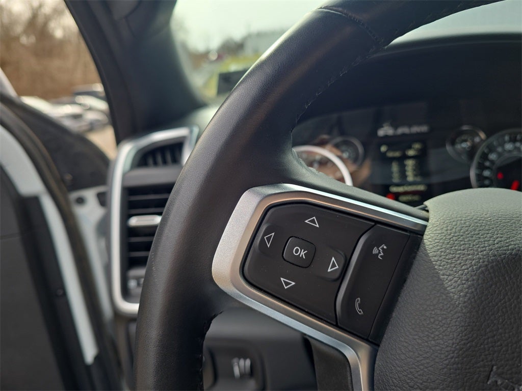 Cold Weather Group (Engine Block Heater and MOPAR Winter Front Grille Cover), Heavy Duty Snow Plow Prep Group (220 Amp Alternator), Level 1 Equipment Group (2 Way Rear Headrest Seat, 2nd Row In Floor Storage Bins, 4 Way Front Headrests, 40/20/40 Split Bench Seat, 4G LTE Wi-Fi Hot Spot, 8.4 Touchscreen Display, Apple CarPlay, Auto Power-Folding Mirrors, Big Horn IP Badge, Black Exterior Mirrors, Bluetooth® Handsfree Phone & Audio, Center Hub, Connectivity - US/Canada, Dual Glove Boxes, Exterior Mirrors Courtesy Lamps, Exterior Mirrors w/Heating Element, Exterior Mirrors w/Supplemental Signals, Foam Bottle Insert (Door Trim Panel), Footwell Courtesy Lamp, For Details, Visit DriveUconnect.com, For More Info, Call 800-643-2112, Forward & Reverse Utility Lights, Front Armrest w/Cupholders, Front Center Seat Cushion Storage, Front Fog Lamps, Front Seat Back Map Pockets, Global Telematics Box Module (TBM), Glove Box Lamp, Google Android Auto, GPS Antenna Input, Integrated Center Stack Radio, Integrated Voice Command w/Bluetooth®, Leather Wrapped Steering Wheel, Locking Lower Glove Box, Manual Adjust 4-Way Front Passenger Seat, Mirror Running Lights, Power 2-Way Driver Lumbar Adjust, Power Adjust 8-Way Driver Seat, Power Adjust Mirrors, Power Adjustable Convex Aux Mirrors, Power Heated Fold Telescope Mirrors, Power Telescoping Mirrors, Rear 60/40 Folding Seat, Rear Dome w/On/Off Switch Lamp, Remote USB Port - Charge Only, Selectable Tire Fill Alert, SiriusXM Radio Service, SiriusXM Satellite Radio, Steering Wheel Mounted Audio Controls, Storage Tray, and Wheels: 18 x 8.0 Polished Aluminum), Off Road Package (Front Performance Tuned Shock Absorbers, Hill Descent Control, Rear Performance Tuned Shock Absorbers, and Tow Hooks), Quick Order Package 2HZ Big Horn, 3.73 Axle Ratio, 4-Wheel Disc Brakes, 6 Speakers, ABS brakes, Active Noise Control System, Air Conditioning, Anti-Spin Differential Rear Axle, Brake assist, Bumpers: chrome, Center Stack Storage Drawer, Chrome Flat Cab-Length Side Steps, Cloth 40/20/40 Bench Seat, Compass, Delay-off headlights, Driver door bin, Dual front impact airbags, Dual front side impact airbags, Electronic Stability Control, Electronically Controlled Throttle, Emergency communication system: SiriusXM Guardian, Front anti-roll bar, Front Center Armrest w/Storage, Front License Plate Bracket, Front reading lights, Fully automatic headlights, Heated door mirrors, Illuminated entry, Low tire pressure warning, Manual Adjust 4-Way Driver Seat, MOPAR Spray In Bedliner, Occupant sensing airbag, Outside temperature display, Overhead airbag, Overhead console, Panic alarm, ParkSense Front/Rear Park Assist System, ParkView Rear Back-Up Camera, Passenger door bin, Passenger vanity mirror, Power door mirrors, Power steering, Power windows, Premium Cloth 40/20/40 Bench Seat (DISC), Radio data system, Radio: Uconnect 3 w/5 Display, Radio: Uconnect 5 W w/8.4 Display, Rear anti-roll bar, Rear Backup Alarm, Rear Folding Seat, Rear seat center armrest, Rear step bumper, Rear Window Defroster, Remote keyless entry, Speed control, Tachometer, Tilt steering wheel, Tip Start, Traction control, Trip computer, Turn signal indicator mirrors, Variably intermittent wipers, Voltmeter, and Wheels: 18 x 8.0 Steel Chrome ClaD.