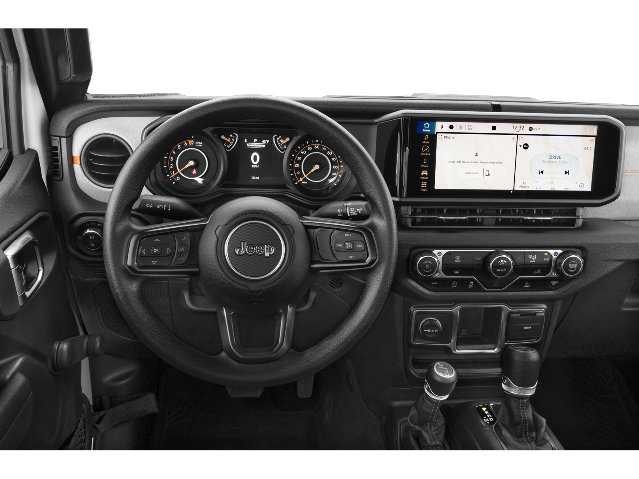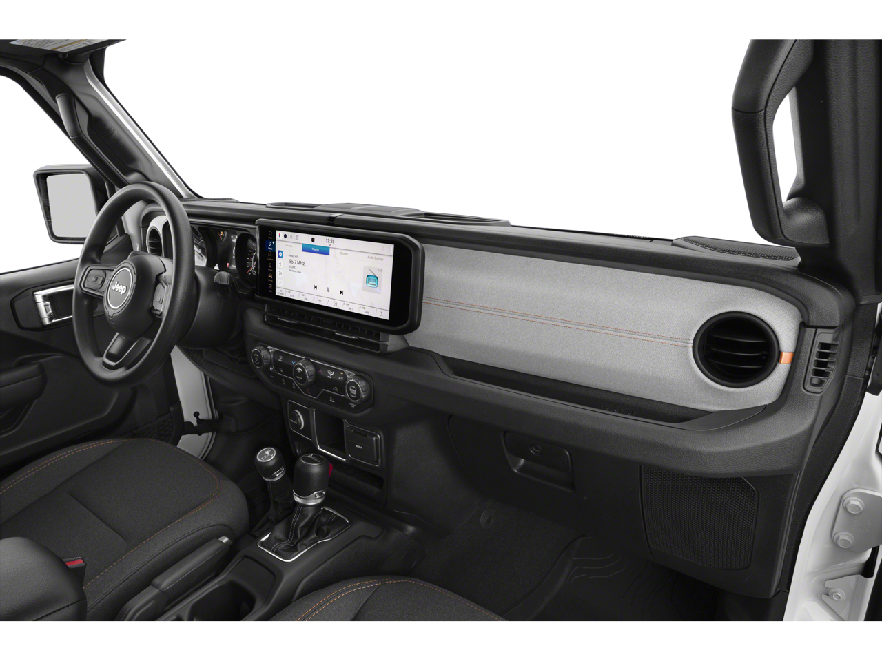 Quick Order Package 24S Sport S (Advanced Brake Assist, Automatic Headlamps, Deep Tint Sunscreen Windows, Enhanced Adaptive Cruise Control, Full Speed Forward Collision Warning Plus, Normal Duty Plus Suspension, Power Heated Mirrors, Premium Wrapped Steering Wheel, Security Alarm, Sun Visors w/Illuminated Vanity Mirrors, and Wheels: 17 x 7.5 Gray), 110 MPH Vehicle Max Speed Calibration, 12.3 Touchscreen Display, 3.73 Rear Axle Ratio, 4-Wheel Disc Brakes, 4G LTE Wi-Fi Hot Spot, 8 Speakers, ABS brakes, Air Conditioning, Alexa Built-In, AM/FM radio: SiriusXM, Apple CarPlay, Apple CarPlay/Android Auto, Black 3-Piece Hard Top, Brake assist, Cloth Low-Back Bucket Seats, Compass, Connectivity - US/Canada, Delay-off headlights, Driver door bin, Driver vanity mirror, Dual front impact airbags, Dual front side impact airbags, Electronic Stability Control, Freedom Panel Storage Bag, Front anti-roll bar, Front Bucket Seats, Front Center Armrest w/Storage, Front fog lights, Front License Plate Bracket, Front reading lights, Google Android Auto, Illuminated entry, Integrated roll-over protection, Low tire pressure warning, MOPAR Spray In Bedliner, Normal Duty Suspension, Occupant sensing airbag, Outside temperature display, Overhead airbag, Panic alarm, ParkView Rear Back-Up Camera, Passenger door bin, Passenger vanity mirror, Power steering, Power windows, Radio data system, Radio: Uconnect 5 w/12.3 Display, Rear anti-roll bar, Rear reading lights, Rear Sliding Window, Rear Window Defroster, Remote keyless entry, Speed control, Split folding rear seat, Steering wheel mounted audio controls, Tachometer, Telescoping steering wheel, Tilt steering wheel, Traction control, Trip computer, USB Host Flip, Variably intermittent wipers, Voltmeter, and Wheels: 17 x 7.5 Black Steel Styled.