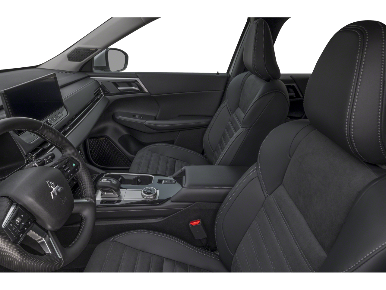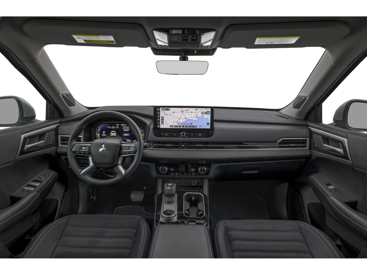 4WD, 3rd row seats: split-bench, 4-Wheel Disc Brakes, 8 Speakers, ABS brakes, Air Conditioning, Alloy wheels, AM/FM radio: SiriusXM, Android Auto & Apple CarPlay, Auto High-beam Headlights, Auto-dimming Rear-View mirror, Automatic temperature control, Brake assist, Bumpers: body-color, Driver door bin, Driver vanity mirror, Dual front impact airbags, Dual front side impact airbags, Electronic Stability Control, Emergency communication system: Mitsubishi Connect w/ 24-month trial, Exterior Parking Camera Rear, Four wheel independent suspension, Front anti-roll bar, Front Bucket Seats, Front Center Armrest w/Storage, Front dual zone A/C, Front fog lights, Front reading lights, Fully automatic headlights, Garage door transmitter: HomeLink, Headlight cleaning, Heated door mirrors, Heated Front Bucket Seats, Heated front seats, Illuminated entry, Knee airbag, Leather Shift Knob, Leather steering wheel, Low tire pressure warning, Navigation System, Occupant sensing airbag, Outside temperature display, Overhead airbag, Overhead console, Panic alarm, Passenger door bin, Passenger vanity mirror, Power door mirrors, Power driver seat, Power Liftgate, Power steering, Power windows, Radio data system, Radio: AM/FM 12.3 Navigation w/Smartphone-Link, Rain sensing wipers, Rear anti-roll bar, Rear seat center armrest, Rear side impact airbag, Rear window defroster, Rear window wiper, Reclining 3rd row seat, Remote keyless entry, Security system, Speed control, Speed-Sensitive Wipers, Split folding rear seat, Spoiler, Steering wheel mounted audio controls, Synthetic Leather Seating Surfaces, Tachometer, Telescoping steering wheel, Tilt steering wheel, Traction control, Trip computer, Turn signal indicator mirrors, and Variably intermittent wipers.